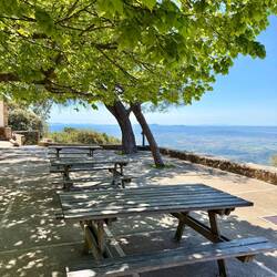 Wir treten ein und finden zwischen den Resten eines alten Kamins und steinernen Bänken den perfekten, windgeschützten Rastplatz für unsere Gruppe. Hier oben, zwischen Geschichte und Weitblick,Baca selengkapnya