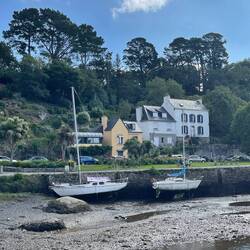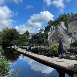 Es ist das erste Mal, dass wir in der Bretagne sind. Begeistert laufe ich vom Parkplatz Richtung Zentrum von Pont-Aven. Dass sich in diesem malerischen Ort so viele Künstler angesiedelt hatten, verwundert mich nicht. Pont-Aven hat Magie. Ich vergesse, dass wir zum Mittag in der Le Moulin de Rosmadec verabredet sind und entdecke alle paar Meter neue Dinge, die mich verzücken. Der Fluss Aven führt kaum Wasser. Die Schiffe schweben und sehen bizarr aus. Der Ort sieht aus wie einem Bilderbuch entsprungen. Selbstverständlich ist das historische Toilettenhäuschen eine Attraktion und wohl das schönste Frankreichs mit seinem bretonischen Giebel und alten Steinmauern.