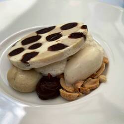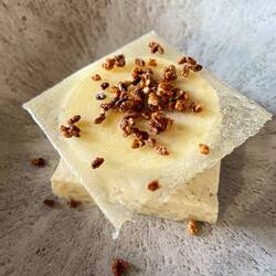 Milchreis, Karamellsauce mit gesalzener Butter, luftige Englische Creme.