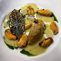 Im September blühen hier noch Geranien und Hortensien, doch ist der bekannte Künstlerort nicht so überlaufen wie im Sommer. Mitten im Zentrum des pittoresken Ortes liegt das Sternerestaurant Le Moulin de Rosmadec. Der charmante Küchenchef Sébastien Martinez führte in der urigen alten Mühle das älteste Sternerestaurant im Finistère. Unser Mittagsmenü für 65 € besteht laut Karte aus vier Gängen, am Ende waren es dann zehn für uns ganz unvergessliche Kreationen, darunter auch Muscheln "Paul Gauguin", Artischocke „Salvador Dalí“, Bassfisch „Johannes Vermeer“ und als süßen und unvergesslich leckeren Abschluss Vanille & Schokolade „Paul Peel“. Für uns war dieser Nachmittag ein einmaliges und einzigartiges Erlebnis, das sicherlich noch noch lange nachwirken und in Erinnerung bleiben wird.