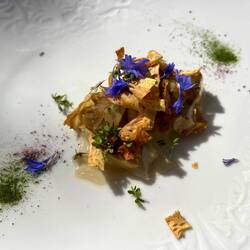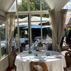 Umgeben vom Meer und der rosa Granitküste ist das Relais & Château Hotel ein bretonischer Schatz. Vom Restaurant aus haben wir einen weiten Panoramablick auf die Inseln Millau, Molène und Losquet... im klaren Septemberlicht einfach magisch! Hier genießen wir ein außergewöhnliches kulinarisches Erlebnis in diesem ganz besonderen Restaurant. Das Lunch-Menü mit 3 Gängen kostet 38 €. Heute gibt es: