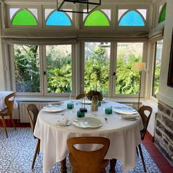 Heute sind wir ein Stückchen weiter Richtung Osten gereist, zunächst entlang herrlicher Küstenort und Strände. Erste Anlaufstelle ist ein Juwel in der Krone der Bretagne, das zu Beginn des letzten Jahrhunderts an den Hängen der rosa Granitküste erbaute „Manoir de Lan Kerellec“ ist das Ergebnis der Vision eines Künstlers, des Malers Pierre Gervais. Die Familie Daubé kaufte es 1925, und seither hat es weder den Besitzer noch den Geist gewechselt.