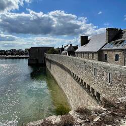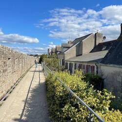 Die befestigte Stadt, die Ville Close, ist einer der am häufigsten besichtigten Orte der Bretagne. Im Sommer sollte man sie am besten am Morgen besichtigen und wie wir später erst erfahren ist sie ab Oktober über den Winter komplett geschlossen und ausgestorben. Auf einer 350 m langen und 100 m breiten Insel gelegen erkennt man sie an ihrem markanten Glockenturm mit dem Zifferblatt der Sonnenuhr und den umlaufenden, massiven Befestigungsanlagen. Zwei kleine Brücken erschließen uns den Weg durch die Tore der Stadtmauern. Die Hauptverkehrsader, die Rue Vauban, wird von bezaubernden Häusern mit der Stadt entsprechenden Schildern gesäumt. Von ihr gehen gepflasterte Gassen ab, die sich schließlich zum Fischereihafen hin öffnen.
