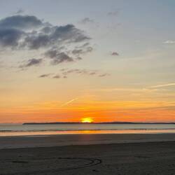 Unser Restaurant liegt traumhaft am langen Sandstrand und man sitzt ganz leger mit den Füßen im Sand. Hier sind übrigens ungewöhnlich viele Deutsche zu Gast und wir kommen ins Gespräch mit einem Karlsruher Paar, das 1981 zum ersten Mal in der Region war und seither 80 mal (ne, das ist kein Vertipper!) Urlaub in der Bretagne und der Normandie gemacht hat. Sie geben uns noch wertvolle Tipps für die Weiterreise.