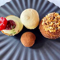 Wir beiden Mädels gönnen uns zusätzlich Mignardises vom Servierwagen für 5 €, auf die man keinesfalls verzichten sollte.