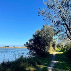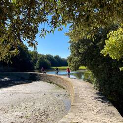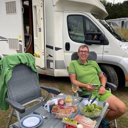 Eigentlich wollten wir noch ein Stückchen weiterfahren, doch dann führt uns ein Hinweisschild zu einem eigentlich schon vollen, aber sehr idyllisch gelegenen Stellplatz und wir bekommen noch einen seitlichen Platz an der Mauer und richten unser Vesper am Fluss, der dank Flut gerade Wasser führt.Read more