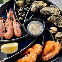 Eher zufällig entdecken wir in Carantec diesen Meeresfrüchte-Produzenten, der uns über die Anstrengungen der Radtour hinweg tröstet mit 2 Meersfrüchteplatten, eine Extraportion Austern und einer Meereesspinne, inkl. einer Flasche Wasser und zwei Flaschen Chardonnay bezahlen wir 90 €. Ein unvergessliches Erlebnis. Doch, ich finde, wir haben Maiers Hochzeitstag gebührend gefeiert.Read more