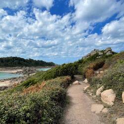 Der "Sentier des Douarniers" (Zöllnerpfad) an der Rosa Granitküste startet oberhalb der Badebucht des "Plage de Trestraou" in Perros-Guirec, und man geht auf die beeindruckende Kulisse aus Rosa Granit zu - mit gleichzeitigem Blick auf die Inselgruppe der Sept-Îles. Und dann beginnen auf der Halbinsel von Ploumanac´h riesige Felsblöcke den Naturgesetzen zu trotzen, und manche könnten jeden Augenblick erwachen. Und sie lassen uns auf dem weiteren Weg bis Trégastel wissen, dass Formenreichtum und Artenvielfalt keine Erfindungen des Lebens sind. Tolle Wanderung, wenn auch alles andere als einsam.Read more