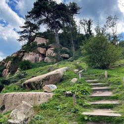 Ich schaue mal., was meine Lieblings-App Komoot hier im Angebot hat und wenn ich dann eine Route runterlade und anpasse, kann das dabei herauskommen. Abenteuerliche Wegeführung auf schmalen Pfaden, Schüttelpisten, Treppen und andere Unwegsamkeiten.Read more