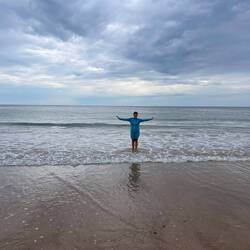 Eigentlich hatten wir geplant, einen Campingplatz in der Nähe anzusteuern, doch dann treffen wir kurz davor auf eine Wohnmobilansammlung direkt am kilometerlangen Sandstrand und stellen uns einfach dazu. Wir haben zwei nebeneinanderliegende Plätze und einen Ausblick, wie er schöner kaum sein kann.