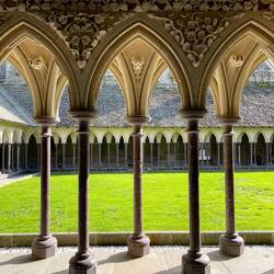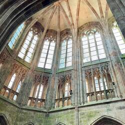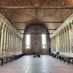 Die Abtei des Mont-Saint-Michel besteht aus mehr als 20 Sälen, darunter eine Kapelle im vorromanischen Stil, romanische und gotische Konventsgebäude sowie ein Chorraum im spätgotischen Stil.