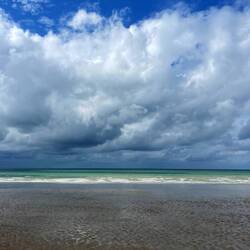 Auf dem Hinweg herrscht Flut, auf dem Rückweg ist das Wasser schon wieder auf dem Rückzug, was für ein Unterschied, schließlich herrscht hier der größte europäische Tidehub mit 13 Metern! Tolle Farben. Wolken, Wellen……