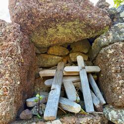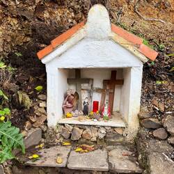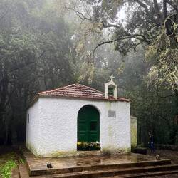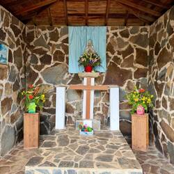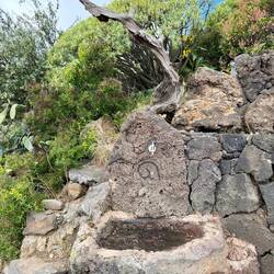 Nach einer guten Stunde Gehzeit erreichen wir die kleine Einsiedelei Nuestra Señora de Lourdes. Sie liegt tief in die Landschaft eingebettet und wird von uralten, schattenspendenden Bäumen Czytaj więcej