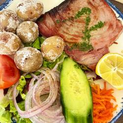 Unsere Wirtin hatte uns dieses Restaurant bereits gestern Abend wärmstens empfohlen. Doch als wir heute Mittag zum Abschluss unserer Wanderung dort einkehren wollten, war es bis auf den letzten Platz Czytaj więcej