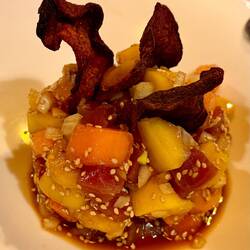 Eher zufällig entdecken wir am Ende eines langen Abstiegs dieses großartige Restaurant. Eigentlich wollten wir nur kurz einkehren, um etwas zu trinken, doch am Ende schlemmen wir uns fast durch die Czytaj więcej