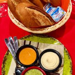 Die Auswahl an Restaurants im Ort ist zwar nicht besonders groß, aber hier ist es sehr gemütlich und es herrscht ein lebhaftes Treiben. Wir starten klassisch mit frischem Brot und drei Czytaj więcej