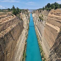Nachmittags kamen geliebte bekannte Gesichter und wir sind noch in die Altstadt von Korinth gegangen, nochmal ein paar Steine angucken, endlich auch mal ein Souvenir für uns kaufen. Einen handgemachten Pythagoras-Becher. Heute auf dem Weg musste natürlich noch der Kanal von Korinth besichtigt werden. Dieser Kanal wurde Ende des 19. Jahrhunderts erbaut, um die Umfahrung der Peloponnes zu ersparen.Read more