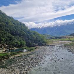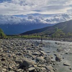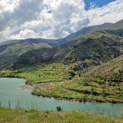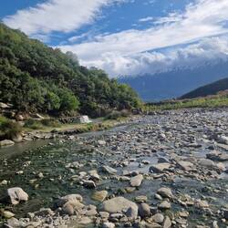 Heute hieß es endlich baden. Rudy hat sich so sehr drauf gefreut und wollte auch gar nicht wieder raus. Die Natur ringsherum ist beeindruckend. Oben auf den Bergen liegt noch ordentlich Schnee undEn savoir plus