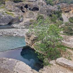 Eine Karstquelle aus der im Durchschnitt 43.000 l/s entspringen. Im Maximum aber bis zu 123.000 l/s. Im Fels befindet sich ein Kloster/Moschee.