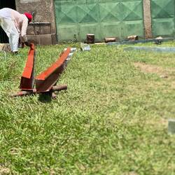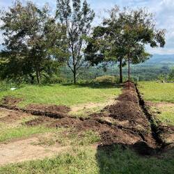 Am Dienstag sollten die Erdarbeiten um 8 Uhr beginnen, angefangen wurde, mit dem Aufbrechen der Erde neben dem Guesthaus, um ein Wasserrohr, dass das Regenwasser vom Dach auf die Straße leitet umzulegen und Richtung Mango Plantagen zu führen. Deshalb wurden drei externe Arbeiter engagiert, die den gesamten Tag bei hoher Luftfeuchtigkeit und praller Sonne, die harte Erde lockerten und Gräben buddelten.