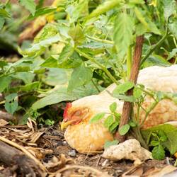 Er war gerade auf dem Weg zu den Tieren und wir schlossen uns an. Er hielt seine Hand an eine Tür eines Nebenzimmers des großen Hühnerstalls, klopfte kurz und sagte „Wir wollen sie nicht erschrecken“. Er ergänzte grinsend „Das mögen sie nämlich nicht so“.