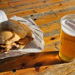 In Villa arriba auf dem Weihnachtsmarkt einen Brasilianischen Hamburger gegessen
