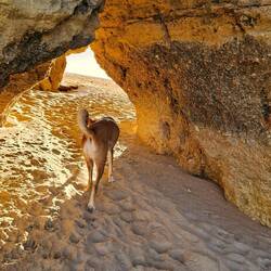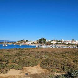 Mit dem Fahrrad und dem Hund nach portomao. Der Ort selbst ist im Winter sehr ruhig
