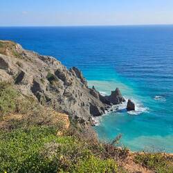 Bin spät los. Zu Fuß Richtung Luz. Schöne Wanderwege. Schöne Aussicht auf den Ort. Die Felsenformationen sind nicht so schön wie bei Portomao auch nicht so rot.