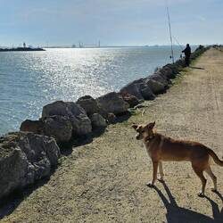 Heute zu Fuß nach Cabañas. Der Hund mag Hundeanhänger nicht so unbedingt. Leider etwas Stürmisch später soll es auch regnen. Deshalb leider kein Übersetzen auf die vorgelagerte Insel