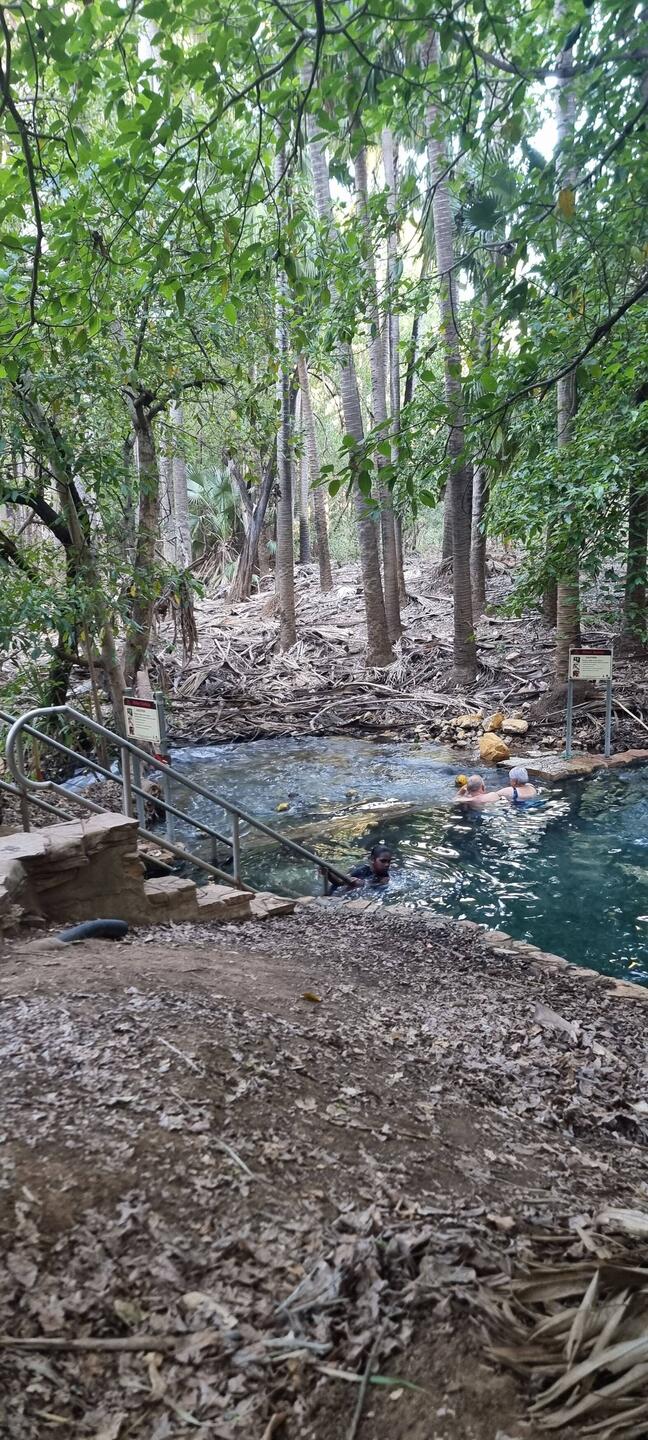 Left Dundee Beach and drove down through Katherine to Mataranka. Finished up with a nice swim, a meal at the homestead.