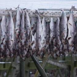 in Norwege hets überall holzgstell, wo dr stockfisch tröcknet wird. diä meiste gstell sind leer, aber a eim sind doch tatsächli fisch ghanget.