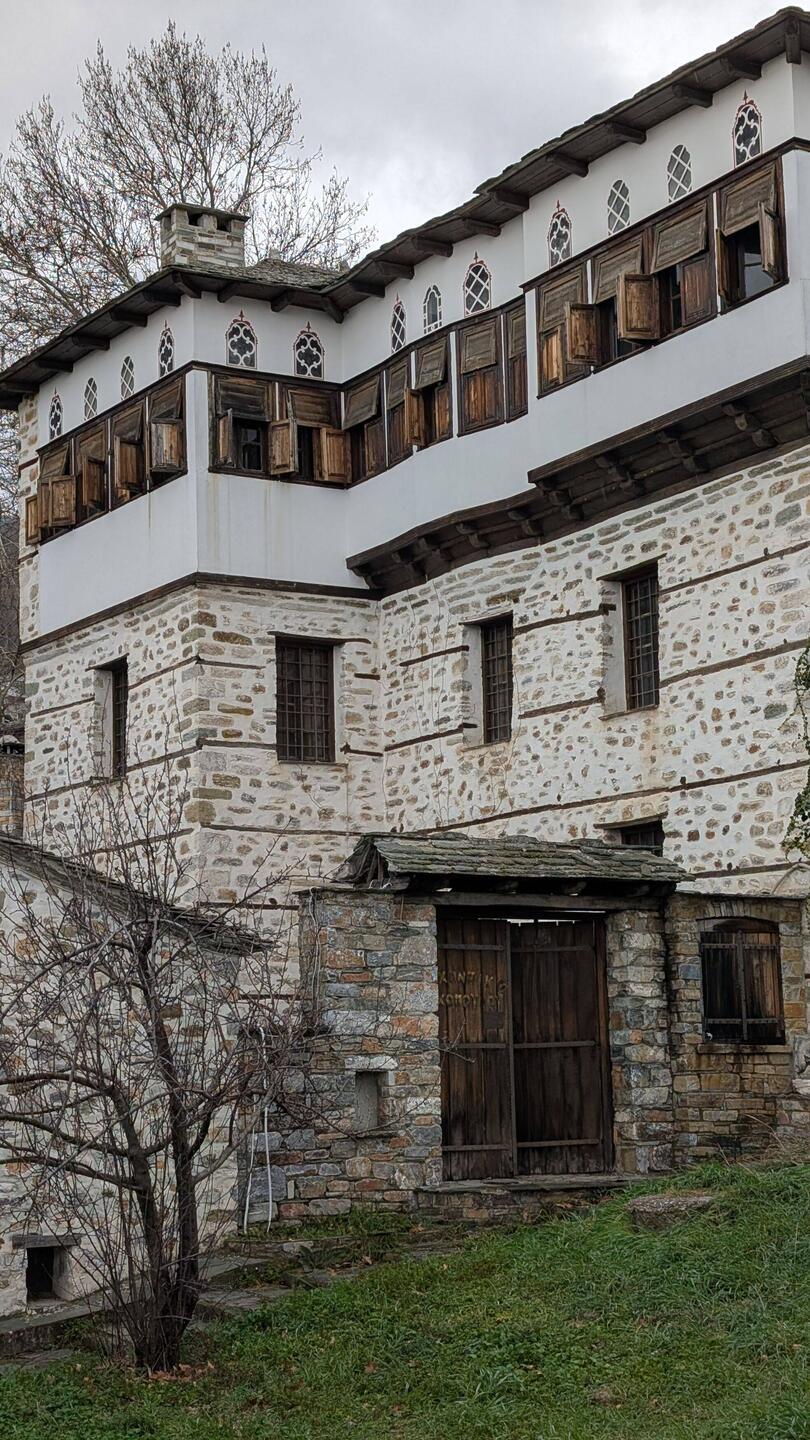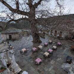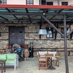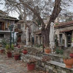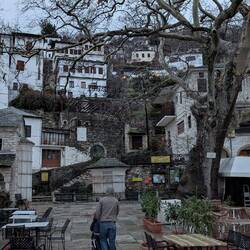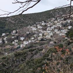 Réveil à Milies, café du coin. Eglise fermée. Traversée de Vizitsa et Pinakates (maisons de maitre à 3 étages).