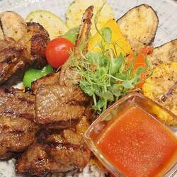 Toujours dans la cuisine, un lagman (nouille épaisse de type udon, sauce tomate, viande de bœuf 🐂 ) avec une brochette de mouton.Read more