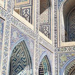 Toujours au Registan, je ne sais plus où poser les yeux devant toutes ces mosaïques et ces pigments de couleur bleutée.