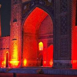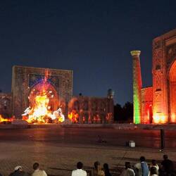 Ce soir, on va manger à L'Emirhan avec une très belle vue sur le Registan.