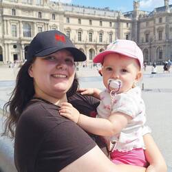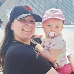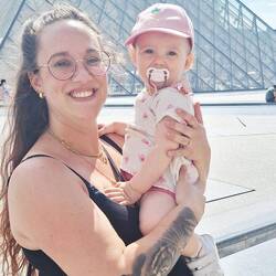 Métro direction Notre-Dame de Paris ! Lia fait sa sieste du matin malgré les nombreux bruits des vieilles rames du métro parisien.🥰