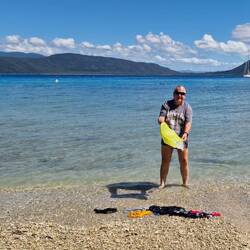 Heute waren wir auf Fitzroy Island zum Schnorcheln. Super schön, tolle Insel. Am Nachmittag bin ich wieder rein ins Wasser, da schwimmt auf einmal ein größerer Thun auf mich zu, ich streck die HandLes mer