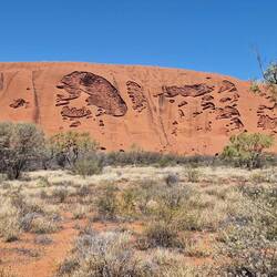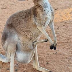 Sind heute zum Uluru (Ayers Rock) ca. 500 km gefahren. Nach drei Stunden Fahrt, konnten wir gleich das gestrig gelernte umsetzen. Totes Känguru auf der Straße gefunden, Arbeitshandschuhe an und dasLes mer