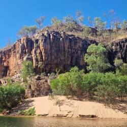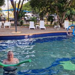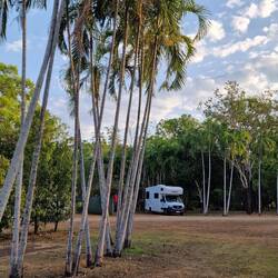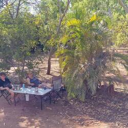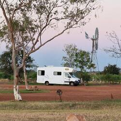 Wir sind jetzt in Katherine gelandet, haben also eindeutig das "Top End" erreicht. Der Campingplatz ist genau das Gegenteil der letzten Tage, gepflegte Grasfläche, kein Staub, kein Urwald dafürLes mer