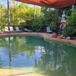 Wir haben in Mataranka einen richtig coolen Stellplatz (wie in einem Dschungelcamp) gefunden. Hier sind nicht nur die unglaublichen warmen Quellen, sondern auch einLes mer