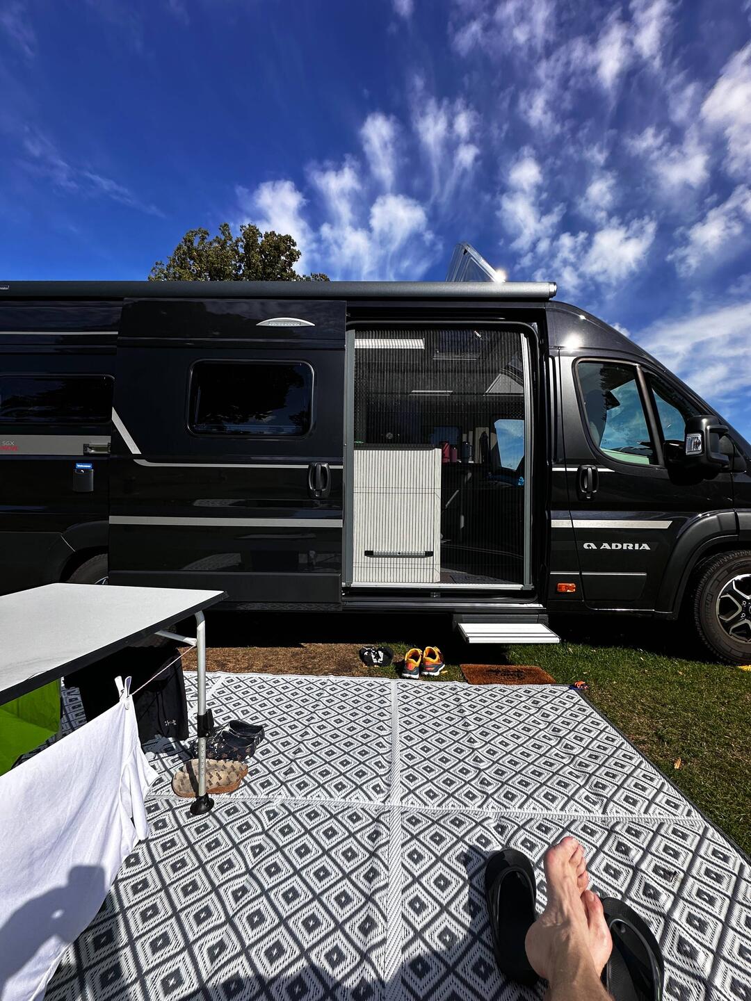 Unsere zweite Zwischenstation erreicht. Schöner Stellplatz direkt hinterm Deich.