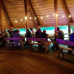 Erom heen een prachtige bar alle soorten tipi,s waar je lekker kon kletsen een grote sauna en twee kleine jacuzzi 's langs een riviertje douches alles erop en eraan echte Eslandse maaltijd gehad en het bier vloeide rijkelijk gelachen gedanst heerlijk .