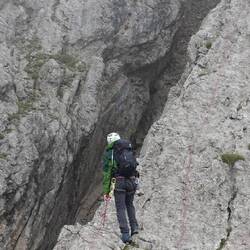 Die letzten schweren Stelle war ein heruntergelassenen Seil, welches schon vor der Erstbegehung von oben herab gelassen wurde, weil die Stelle schwierig aussah.