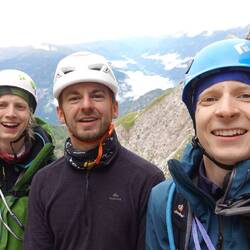 Bei der anderen Seilschaft, hatten wir die Hoffnung, dass sie schneller als wir sei, da wir zu dritt mehr Zeit brauchen. Leider war sie das nicht und wir mussten erst am Routeneinstieg längere Zeit warten, das ging gut, bis die Sonne hinter den Wolken verschwand. Ab dann wurde es zapfig, wie Maxi sagen würde.