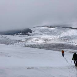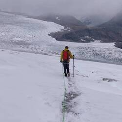 Den Weg hoch habe ich die Seilschaft geführt. Sobald wir auf dem Gletscher waren, wurde es sehr windig und so wirkte die Luft noch kälter.