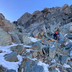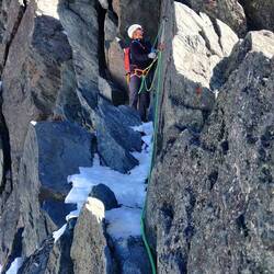 Im gesamten Grat lag in der Westseite etwas Schnee, der zum Teil rutschig war.