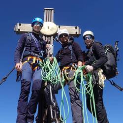 Gleichzeitig mit uns ist eine Seniorentruppe am Gipfel angekommen, die uns dann im Abstieg über den Normalweg sehr gebremst hat. Durch viele entgegenkommende Seilschaft musste man auch immer wieder warten und das auch wenn Bergführer uns überholt haben. Die einfache Route, die im Aufstieg 2 h dauert hat bei uns im Abstieg 3 h gedauert. Das hat das Gipfelerlebnis dann kurzzeitig überschattet.