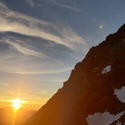 Um 17:00 Uhr waren wir dann endlich an der Erzherzog-Johann-Hütte, auf der wir die Nacht verbringen. Mit einer Höhe von 3.454 m ist es nicht nur die höchste Hütte Österreich, sondern auch höher als viele Gipfel der Alpen. Somit haben wir nach dem Abendessen einen wunderschönen Sonnenuntergang mit erleben dürfen.