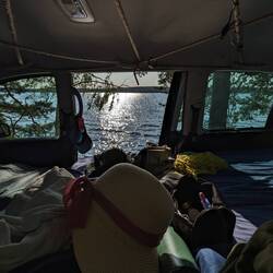 Heute sind wir endlich mal direkt am See aufgewacht, diese Aussicht macht direkt gute Laune!