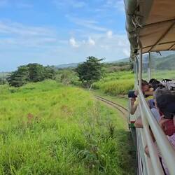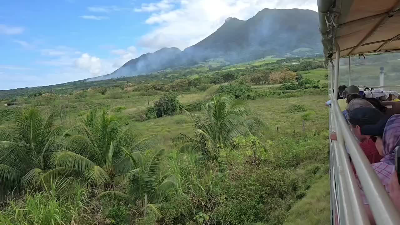 Mit dem Zuckerzug über St. Kitts. 🚂🌴 Über diese Strecke wurde früher bis 2005 noch Zuckerrohr transportiert. 🛤️ Jetzt werden nur noch Touristen transportiert. 🧑🤝🧑 DerLæs mere